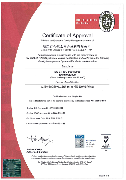 浙江百合航太復合材料有限公司成立于2014年,是集先進復合材料產(chǎn)品開發(fā)設(shè)計、生產(chǎn)、銷售、服務于一體的高新技術(shù)企業(yè), 主要產(chǎn)品有復合材料液體成型樹脂、碳纖維、玻璃纖維和芳綸纖維預浸料、以及結(jié)構(gòu)粘合劑膠膜等。